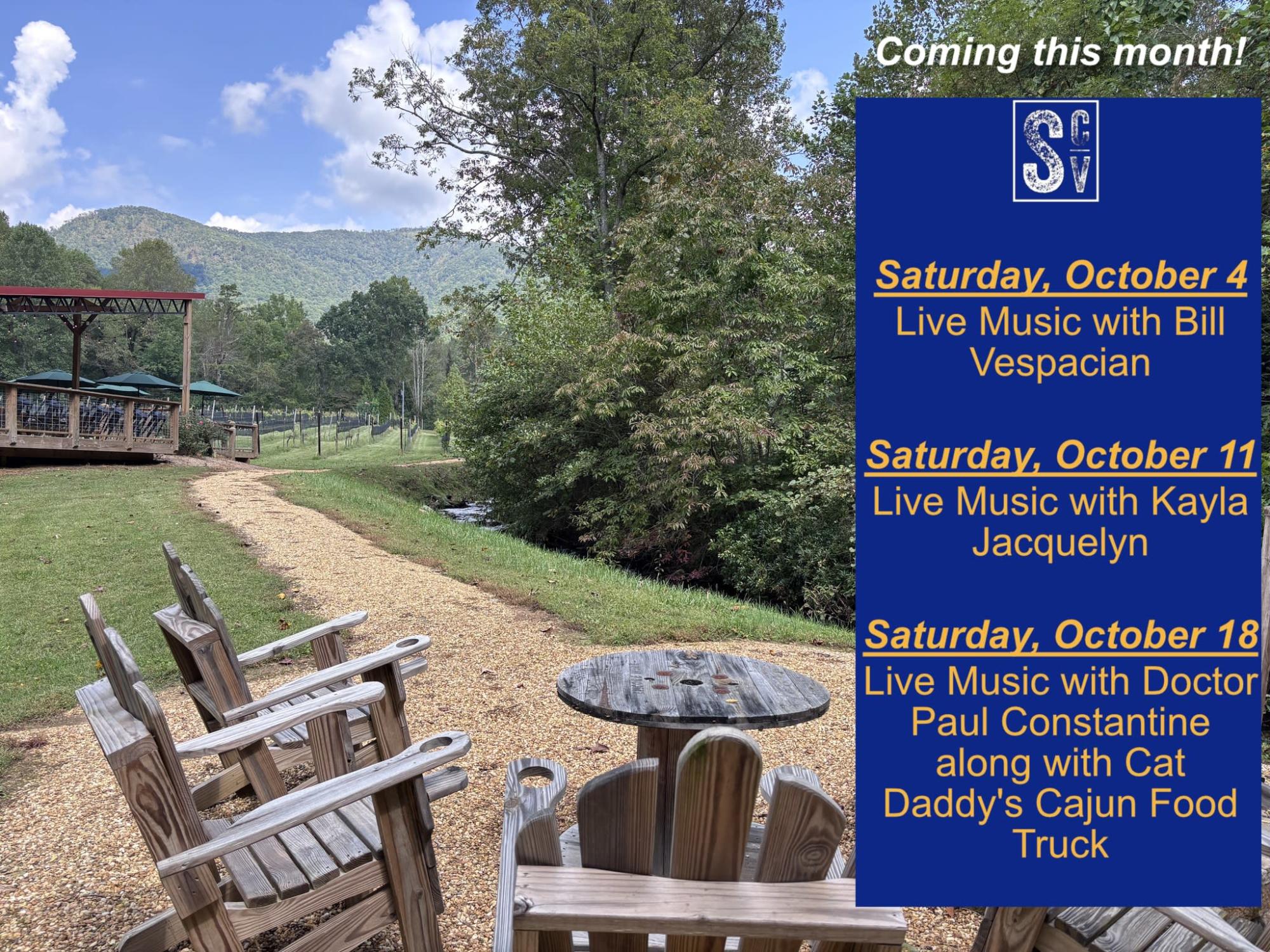 Here's our upcoming lineup for artists playing live music at our Tasting Room. They'll be playing every Saturday this season from 2-5pm. Our Tasting Room is open Friday - Sunday 12-6pm with all your favorite wines being poured; come out and see us!