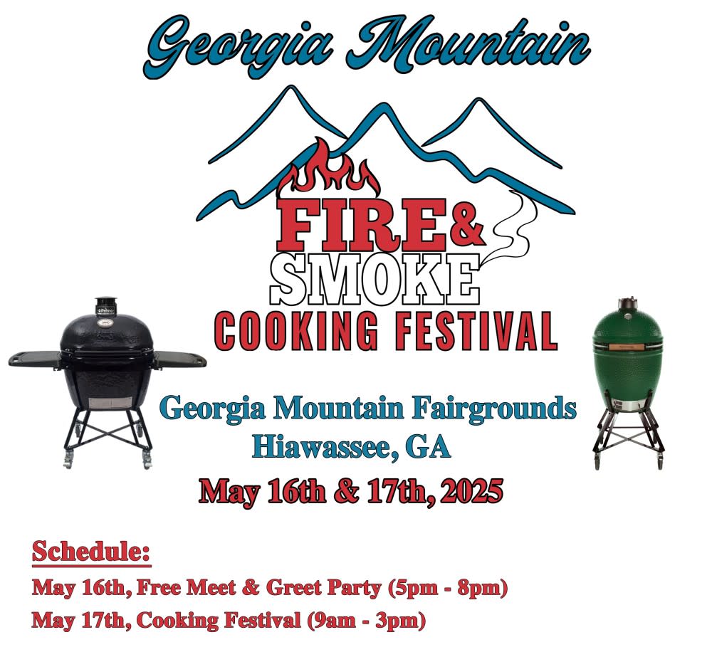 Georgia Mountain Fire & Smoke Cooking Festival is a gathering of ceramic cooking fans and experienced cooks from all across the country and Canada. The cooks will be showcasing their skills and talents and will be preparing their specialty recipes all day long. The non-cooks (tasters) get to stroll through the Georgia Mountain Fairgrounds, sample and experience wonderful culinary creations while talking to the cooks about their recipes and techniques.