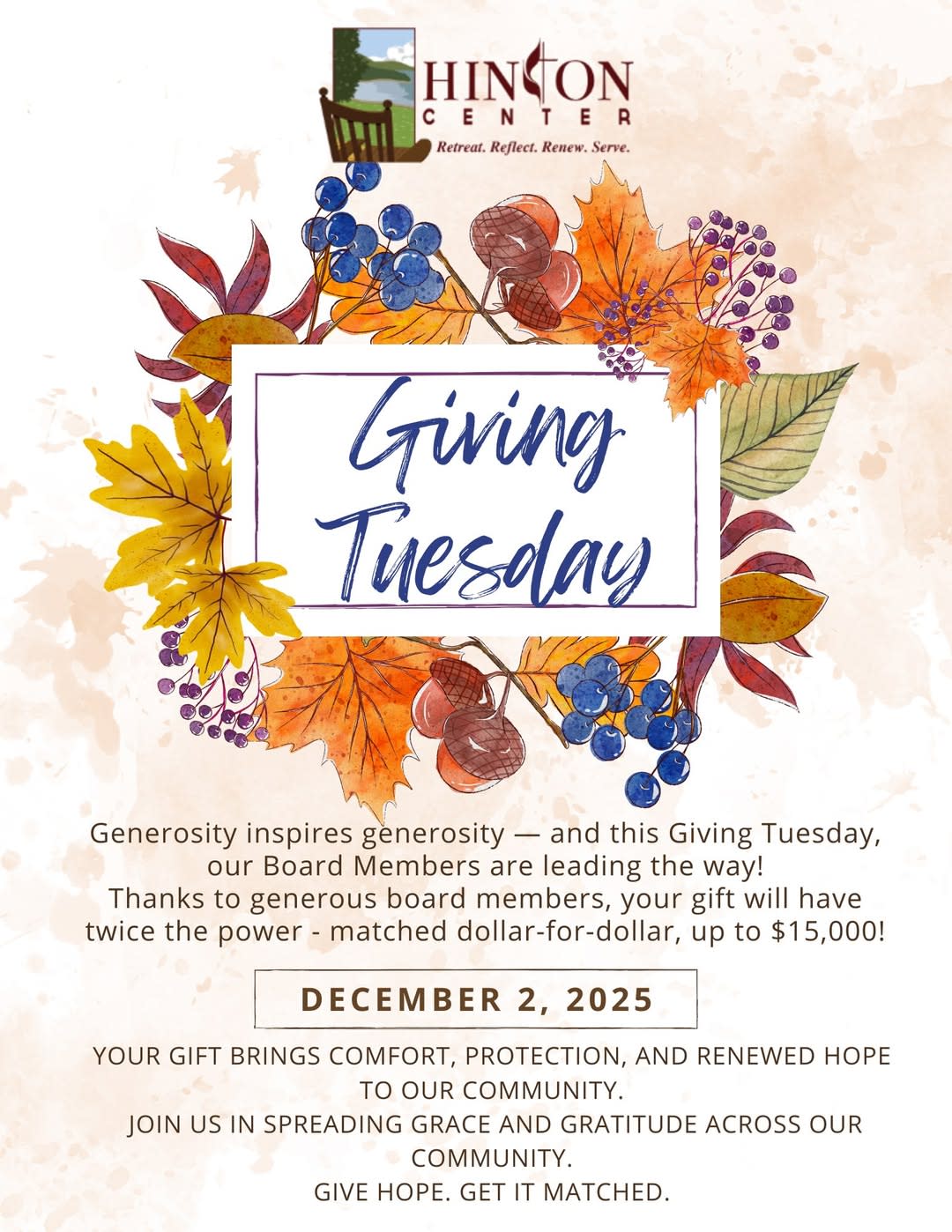 GIVING TUESDAY AT THE HINTON CENTER - GIFTS MATCHED DOLLAR FOR DOLLAR!