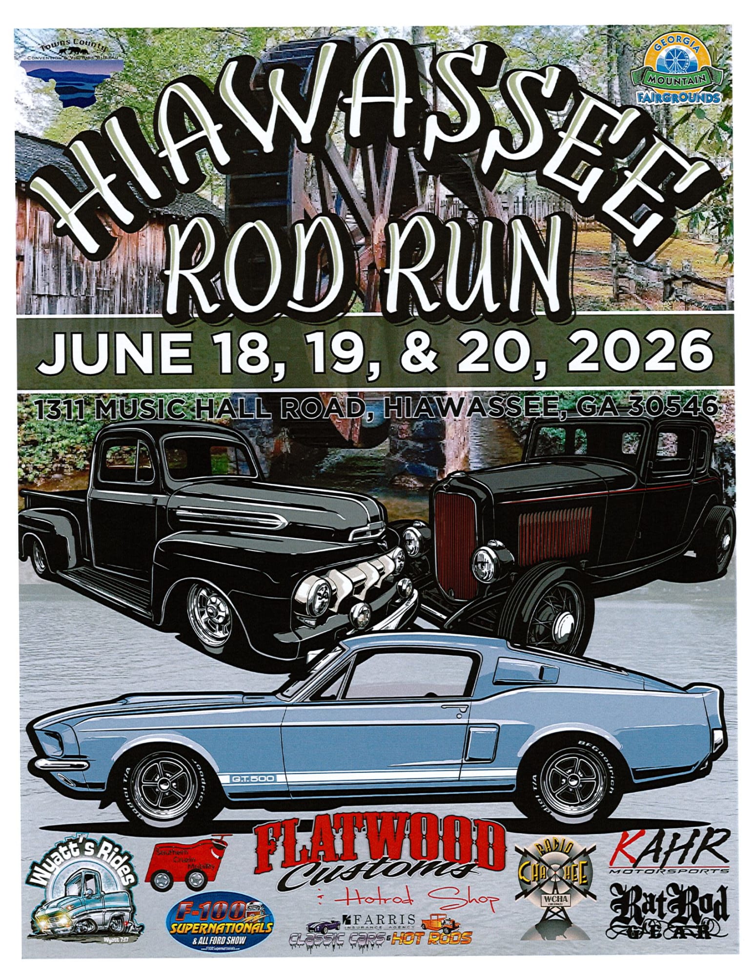 The Hiawassee Rod Run is presented by Kahr Motorsports & the Georgia Mountain Fairgrounds. Open to any 1979 and earlier car as well as any 1999 and earlier truck. Any performance or sport domestic vehicles welcome. $5,000 in CASH Giveaways! Daily Admission: $10, Children 12 & Under are FREE!