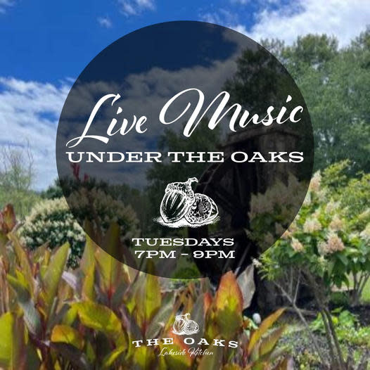 Join us for Live Music Under the Oaks! From 7-9 p.m. on Tuesdays each week, we'll have music from local artists on the lakeside lawn. Don't miss out on delicious food & lakeside views! Make reservations and enjoy a full-service meal. Bring your blankets & chairs for the lakeside lawn and order drinks & small bites! Plan ahead & enjoy our special Wine & Charcuterie Board! This includes a bottle of Proverb California wine, wine glasses, and a cheese & charcuterie board. $40 (pre-order only). Link here to order: https://loom.ly/Df5L_i8 There is no admission charge for live music.