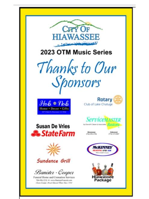 Great family Fun! Bring A Blanket or Chair. Well behaved pets are welcome (with cleanup)! Special Thanks to you, our corporate sponsors, and the City of Hiawassee who keep our concerts going! 6PM - Come Early - VFW Auxiliary Food Truck, Sister's Specialty Desserts, and a few surprises. This year's rain venue is the Civic Center behind the library.