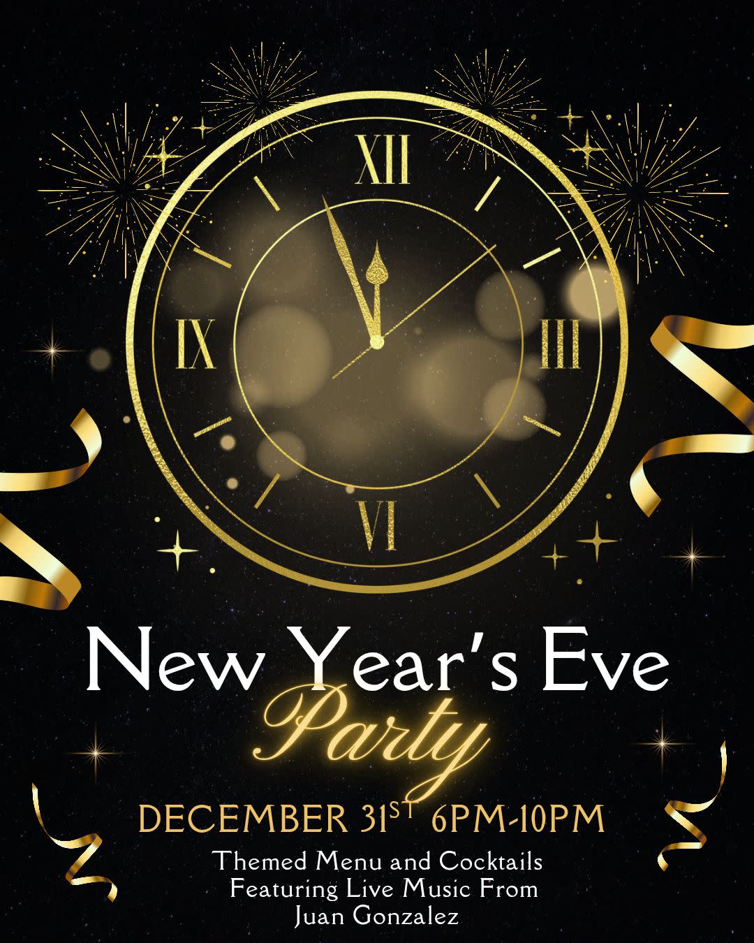 Come celebrate New Year's Eve with us!!! We will have themed menu items and cocktails and live music from Juan Gonzalez and his band starting at 6pm! Call 828-415-1649 for reservations!!