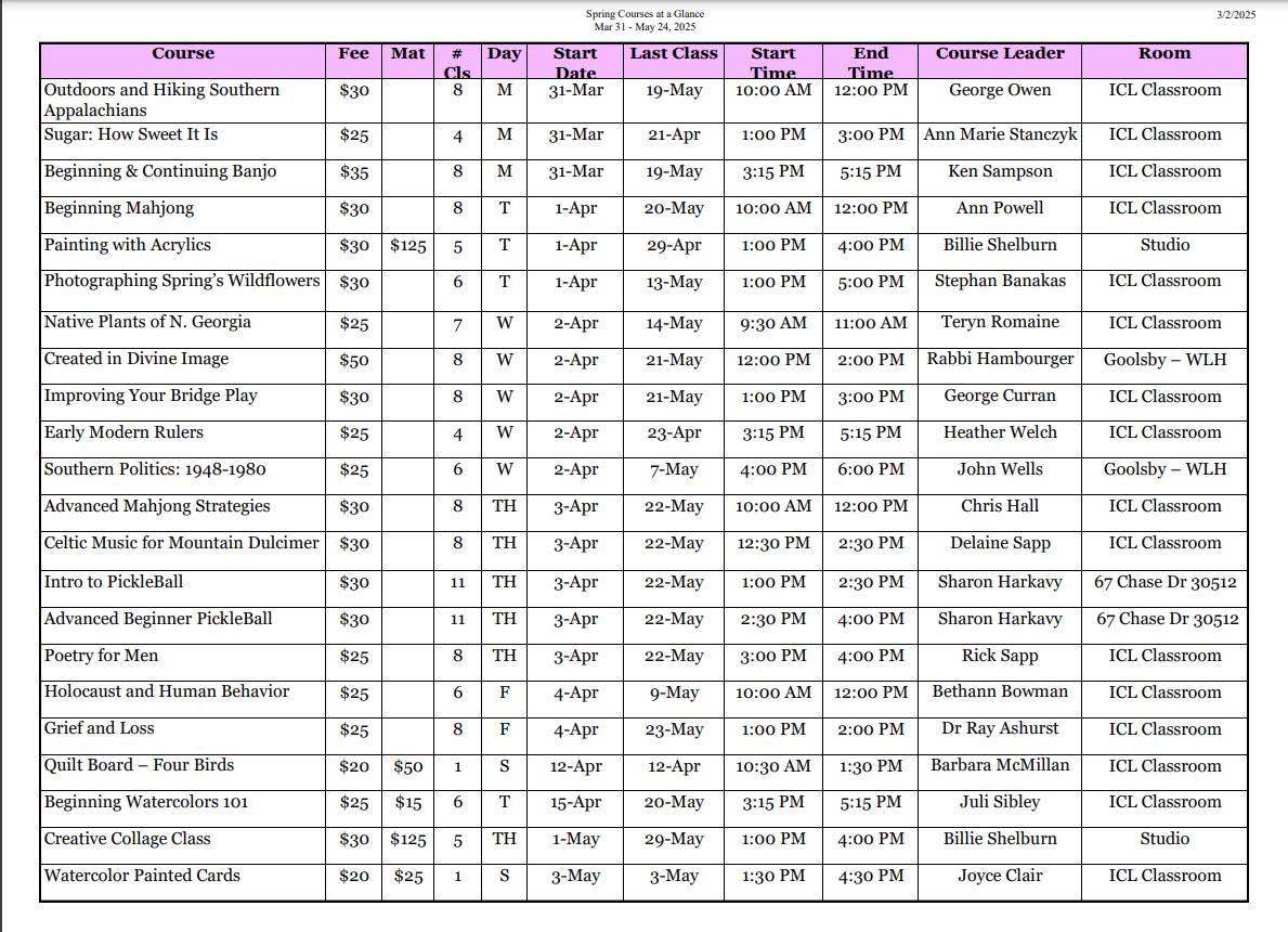 REGISTRATION OPENS MARCH 10TH FOR SPRING 2025 ICL COURSES