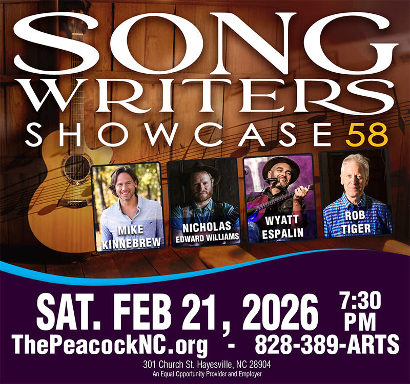 Discover the soul-stirring magic of original music at "Songwriters Showcase 58," happening on February 21, 2026, at 7:30 PM. Nestled in the comforting ambience of the illustrious Peacock, this beloved local event, hosted and curated by the charismatic Rob Tiger, brings you an unforgettable evening celebrating some of the finest musical storytellers of our time. Each featured artist, handpicked for their exceptional artistry and lyrical prowess, promises to grace the stage with mesmerizing performances that transcend the ordinary. Enjoy the intimacy of soulful ballads and the thrill of untold stories, where each melody and verse stitches new and contemplative emotions into the tapestry of your memory. Here, the authenticity of human experience can be felt in every note, making it an unmissable night rich in creativity and connection. Whether you're a lifelong music lover or a curious newcomer, the Songwriters Showcase Series offers unmatched entertainment value in the serene beauty of the mountains. Embrace a captivating evening blending poignant narratives and harmonious symphonies. Secure your tickets now—prices are just right for an enchanting night of music. Do not let this enchanting performance slip by; book your seat today and be part of this invaluable musical tradition.