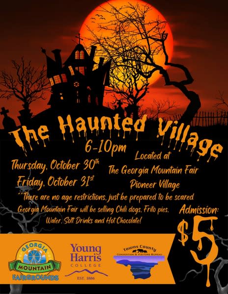 The Pioneer Village transforms into a haunted maze of ghostly encounters and spine-tingling surprises. There are no age limits to enter, but don't be fooled, be prepared to be scared as you make your way through the village! Admission: $5.00