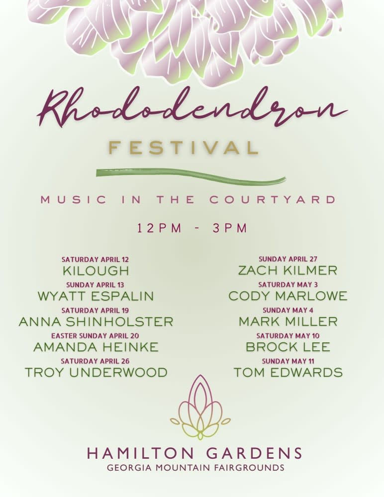 Spend a day in the most beautiful part of North Georgia - Hiawassee and the stunning Hamilton Gardens. This magical botanical garden is filled with native wildflowers like trilliums, shooting stars, and trout lilies, and more than 1,500 rhododendrons and native azaleas making it the largest collection in the Southeast! During peak bloom time we will be celebrating our beautiful native flowers with a Rhododendron Festival. Enjoy live music, food, drinks, a plant sale, daily seminars and more! Admission: $10 donation requested to tour the gardens. 12 and under free!