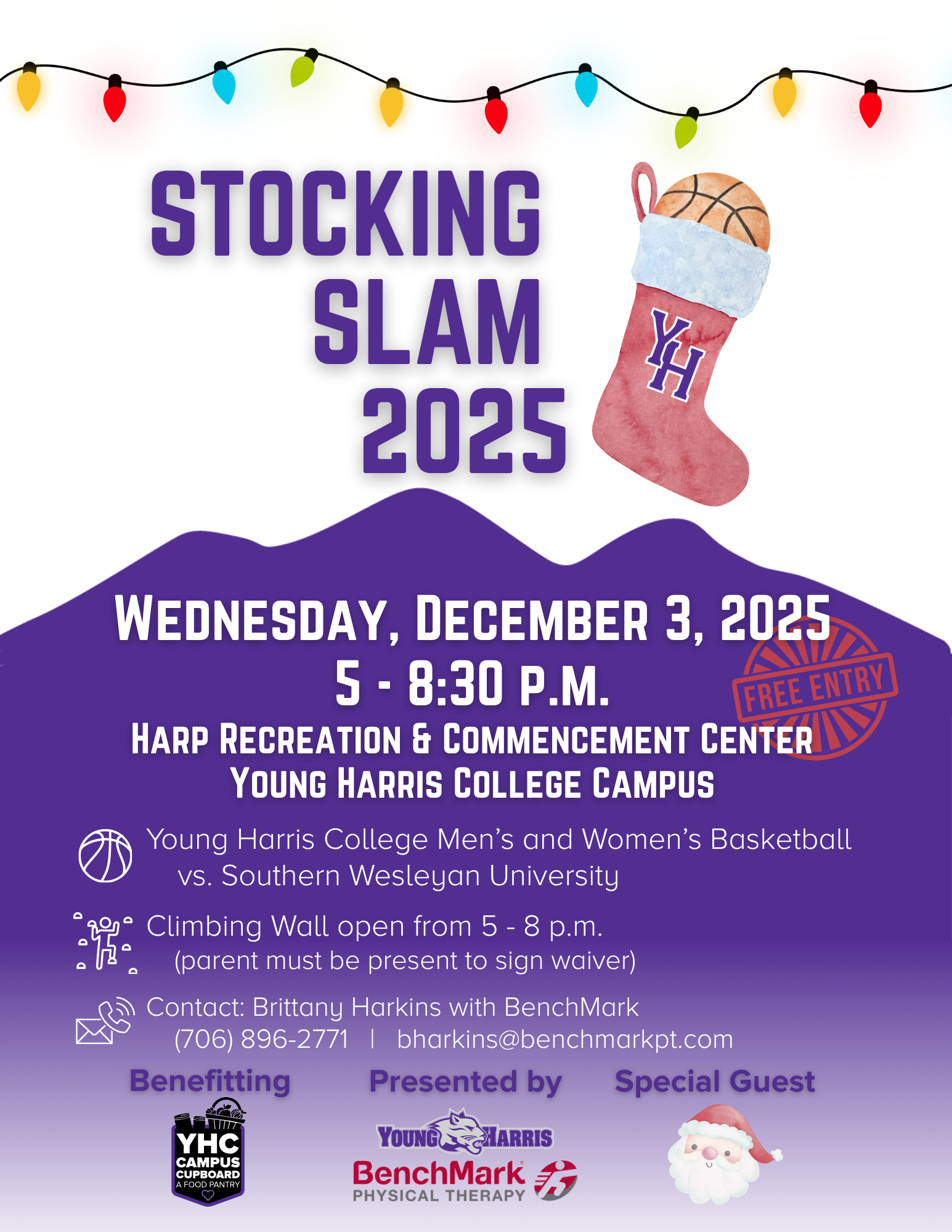 Join us for the annual stocking slam on Wednesday, Dec. 3rd! FREE admission, half time games, special guest, and more for kids in our community. Donations are being collected to support the college food pantry, YHC Campus Cupboard, and can be made at yhc.edu/give/ 🎄💜 Pre order shirts with Maddie Urquiola at murquiola@yhc.edu.