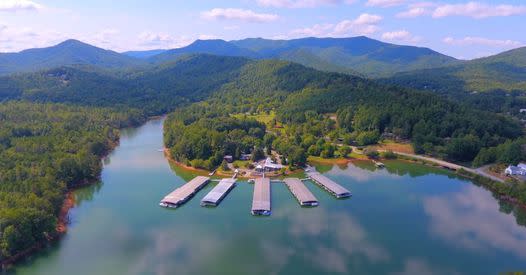 Boundary Waters Resort & Marina is a quiet, secluded haven for a relaxing getaway amid the peace and stunning beauty of Lake Chatuge. Our Lakeside deluxe suites and Mallard Point Lakeside Cottage offer private deck views overlooking our secluded cove and the surrounding national forest. Enjoy a leisurely cruise on beautiful Lake Chatuge aboard one of our JC TriToon pontoon boats, ski boats, or jet skis. We also have a full service marina with 200 covered wet slips, and The Blue Canoe gift shop, offering unique home and fashion accessories. Boundary Waters has been the exclusive dealer for JC Pontoons in the Lake Chatuge area for over 25 years. Visit our online store at www.bluecanoegifts.com Bronze membership