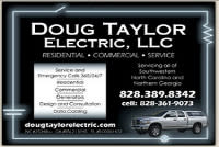 Doug Taylor Electric is located in the mountains of Western North Carolina and holds Unlimited Electrical Licenses in North Carolina, Georgia and Florida.